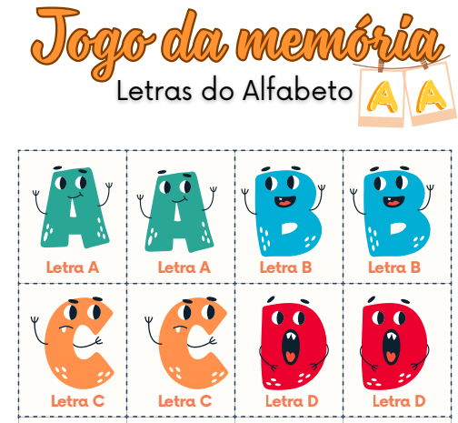 JOGO DA MEMÓRIA – LETRAS DO ALFABETO.